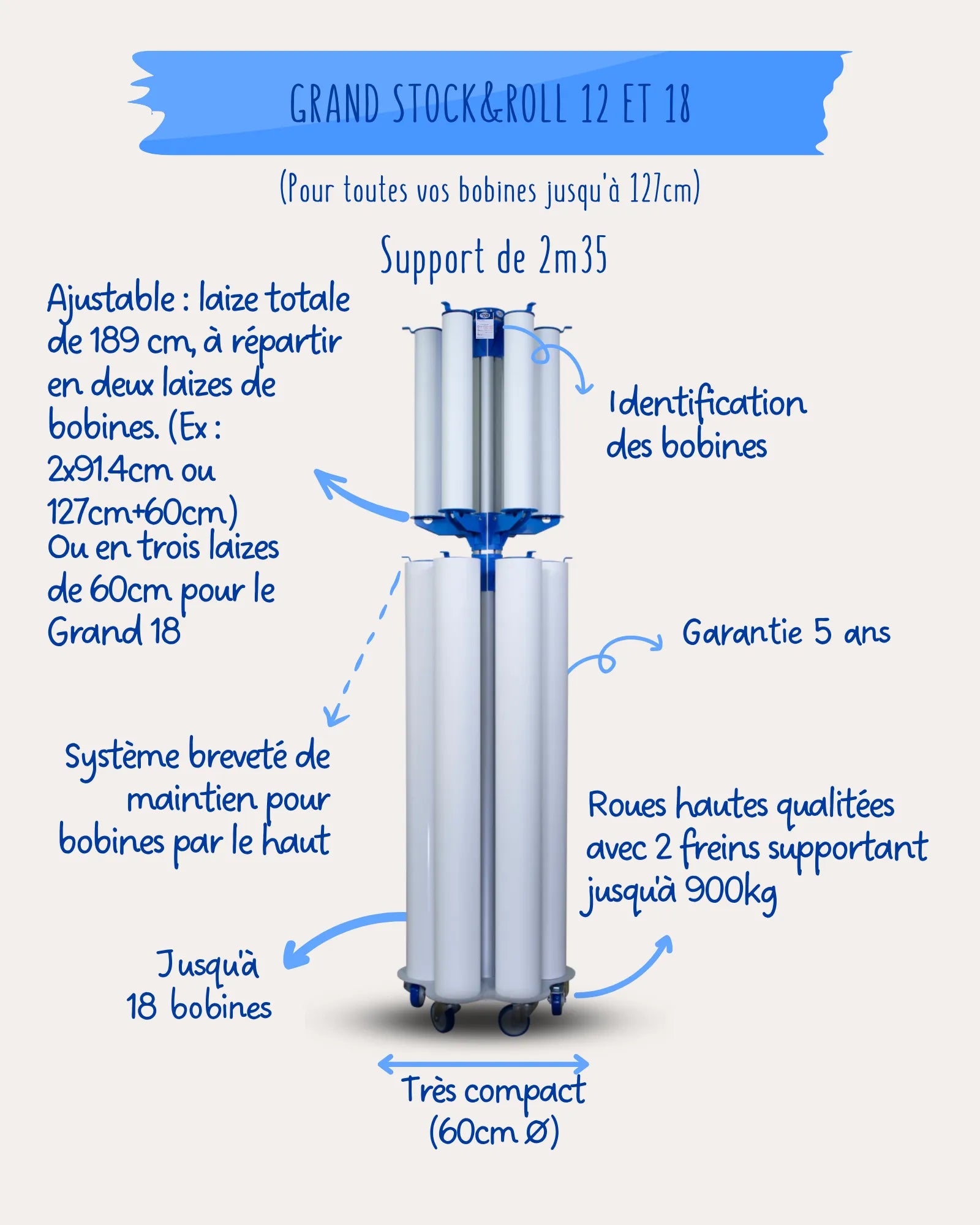Grand Stock & Roll - Chariot de stockage 12 à 18 bobines grand format
