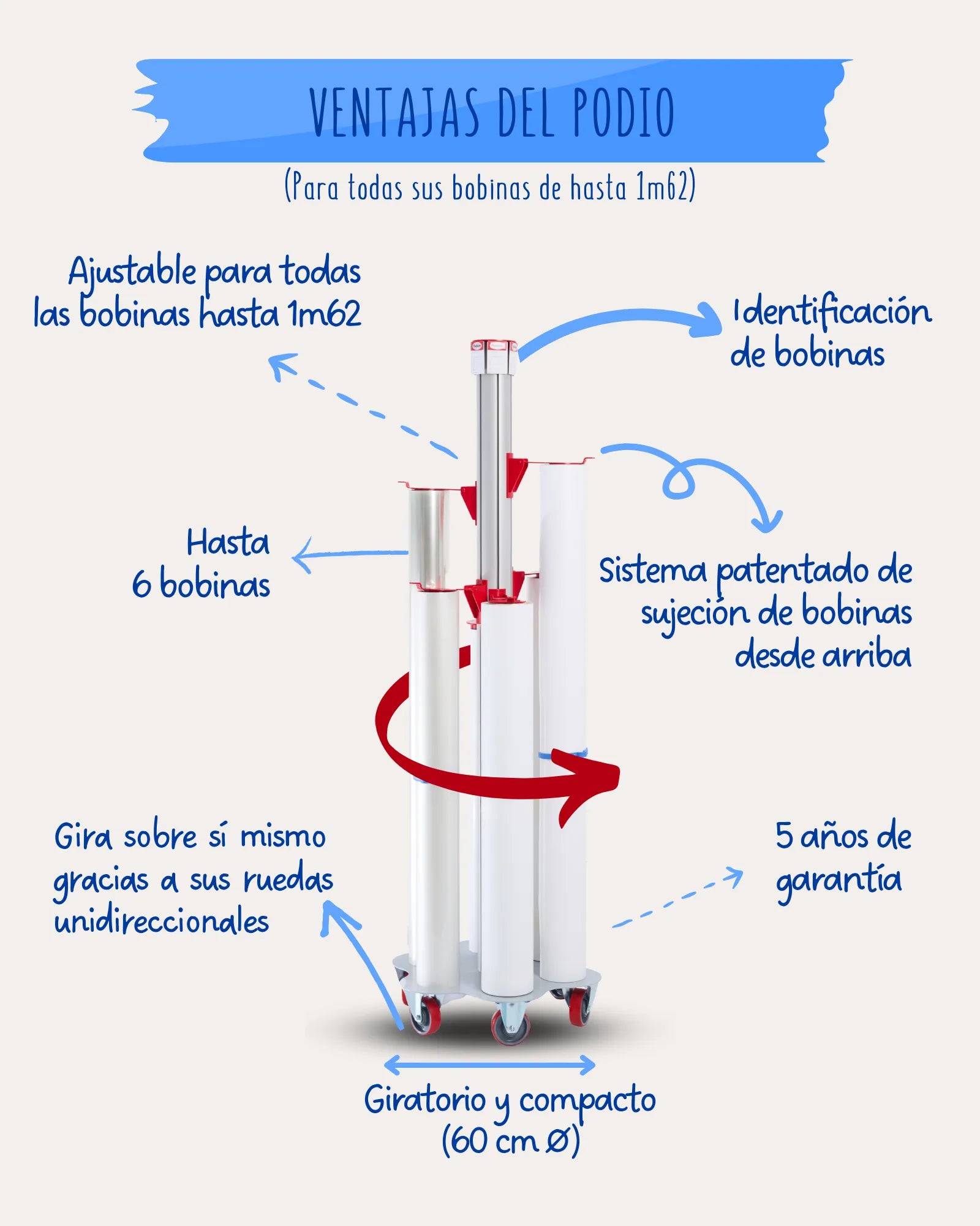 Podium - Carro de almacenamiento fijo y giratorio 6-12 bobinas
